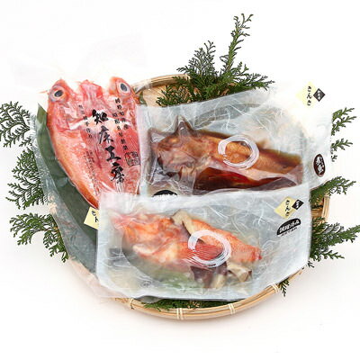 【事業者名・販売者名】合資会社吉野 【所在地】北海道【名称】魚介・加工品 【数量・内容】一夜干し(約250g)×1、出汁煮半身(200g)×1、姿煮(250g)×1 【賞味期間】180日 【原材料】【一夜干し】きんき(知床沖)、塩 【出汁煮】酒、砂糖、かつお節、昆布、ふき 【姿煮】醤油、みりん、酒、砂糖、かつお節、昆布 【仕様】掲載商品には、アレルギーの原因といわれる原材料を含んでいる場合がございます。