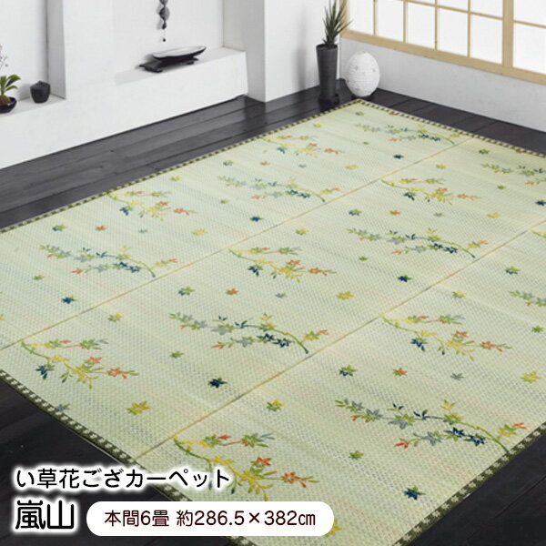 【エントリーでポイント10倍! 6/14 20:00-6/21 01:59】 い草 ラグ カーペット 本間6畳 (286.5×382cm) 嵐山 紅葉柄 ラグマット 花ござ 4300216 ※北海道・沖縄・離島+1620円