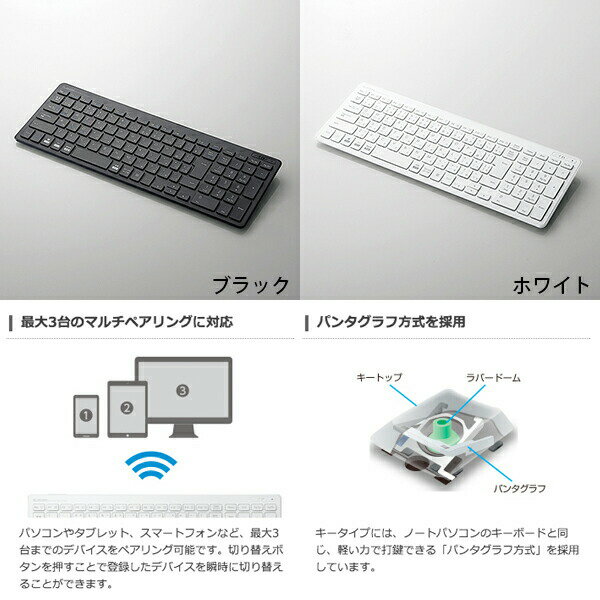 ELECOM(エレコム) Bluetooth薄型コンパクトキーボード TK-FBP101ブルートゥース キーボード 無線 薄型 コンパクト スマートフォン レシーバー不要 タブレット ペアリング 最大3台 パンタグラフ 打ちやすい 日本語104キー 快適 タイピング アンドロイド
