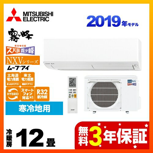 [MSZ-NXV3619S-W] 三菱 ルームエアコン NXVシリーズ ズバ暖 霧ヶ峰 住設モデル コンパクト暖房強化モデル 冷房/暖房:12畳程度 2019年モデル 単相200V・20A 寒冷地向け ピュアホワイト 【送料無料】