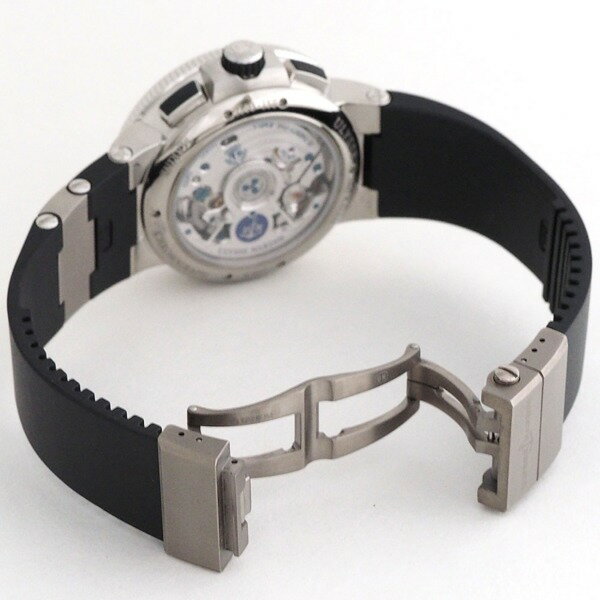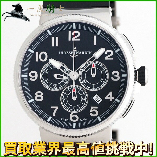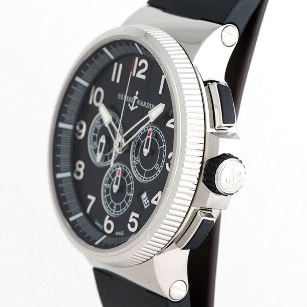 【最大5,000円OFFクーポン利用可】【枚数限定 8月28日9:59まで】223576【中古】【ULYSEE NARDIN】【ユリス・ナルダン】マリーン クロノグラフ 1503-150-3/62 黒文字盤 SS×ラバー 保証書 箱 マリン